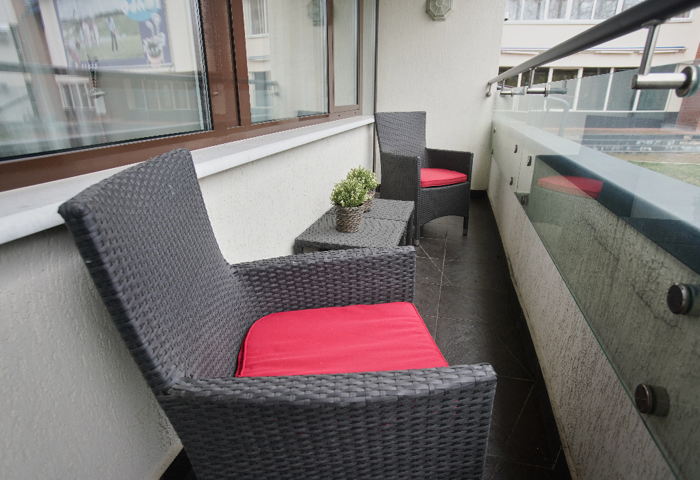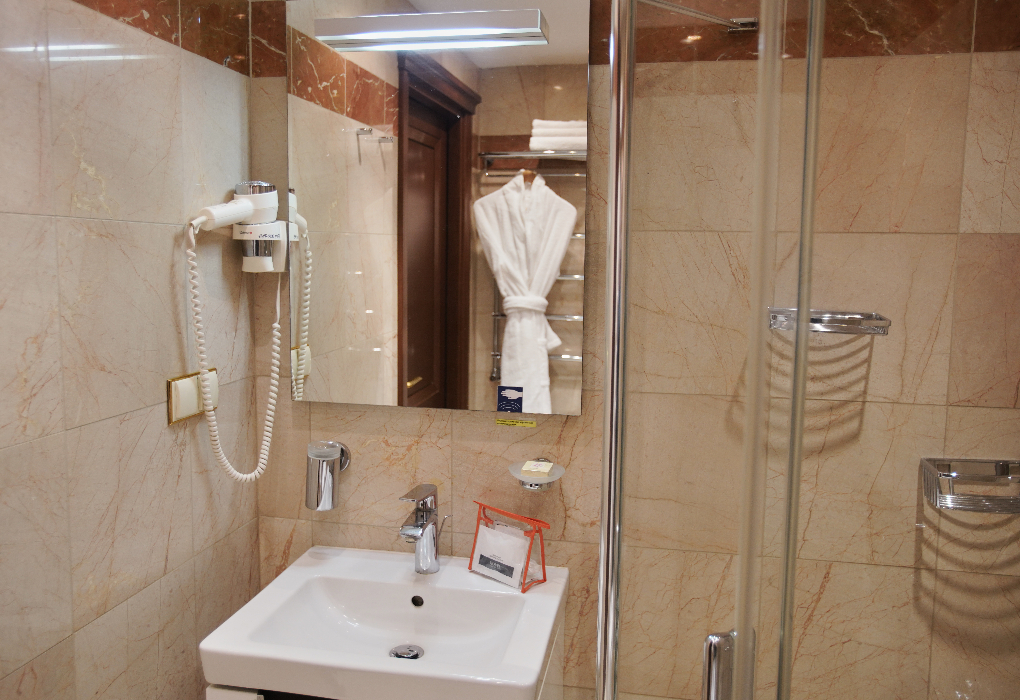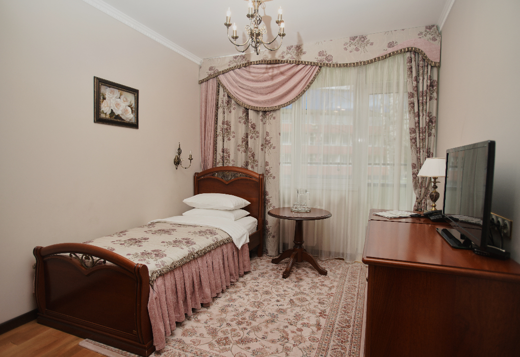 Площадь номера - 15 кв.м. 1 комната. 1 осн. место. В номере: телевизор; балкон; кондиционер; телефон; душ; фен; сейф; тапочки; Wi-Fi; утюг; туалетные принадлежности; 1-спальная кровать; стол; мини-холодильник; стулья; сушилка для белья; полотенца; чайная станция.