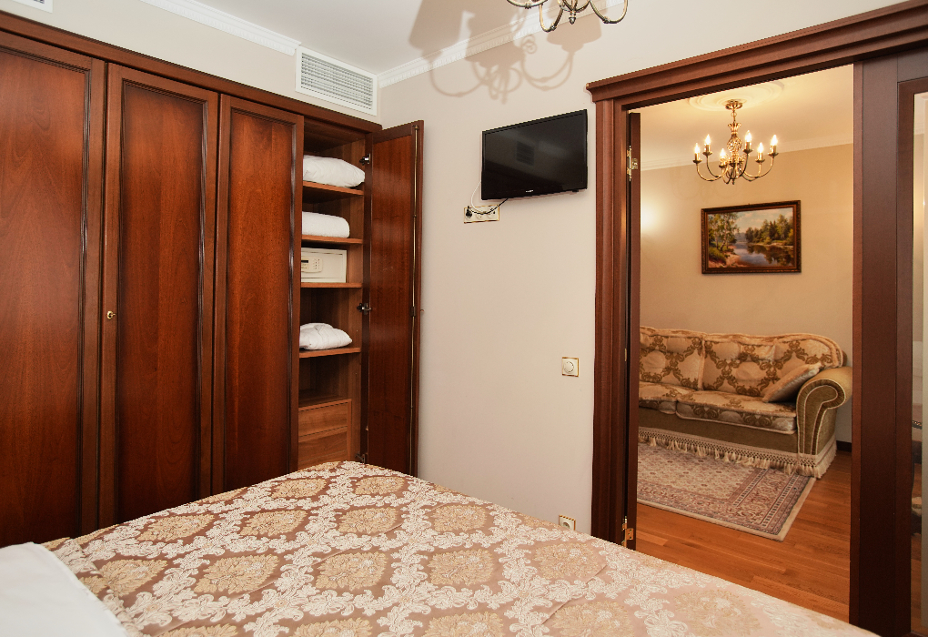Площадь номера - 32 кв.м. 2 комнаты. 2 осн. места. В номере: телевизор; балкон; кондиционер; телефон; душ/ванна; туалет; фен; сейф; тапочки; Wi-Fi; туалетные принадлежности; 1-спальные/ 2-спальная кровать; стол; мини-холодильник; стулья; сушилка для белья; полотенца; чайная станция. 2 доп. места: