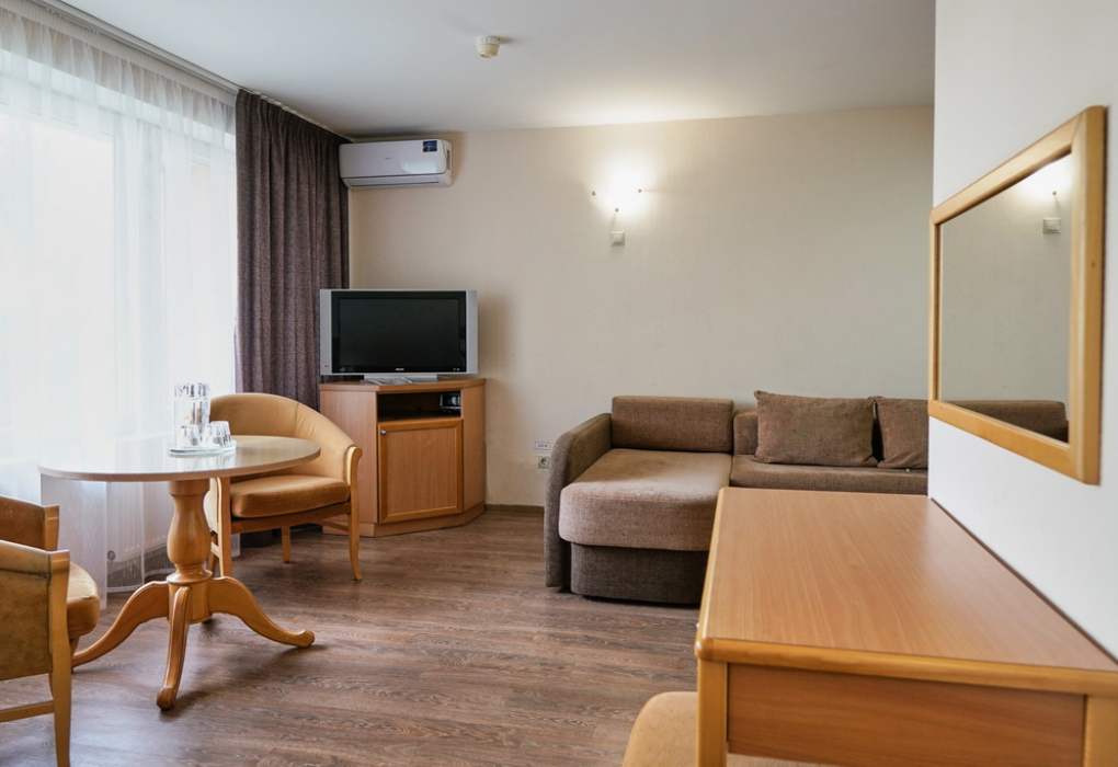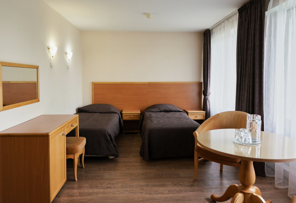 Площадь номера - 32 кв.м. 1 комната. 2 осн. места. В номере: телевизор; балкон; кондиционер; телефон; душ; фен; Wi-Fi; туалетные принадлежности; 1-спальные кровати; стол; мини-холодильник; стулья; полотенца; чайная станция. 2 доп. места: